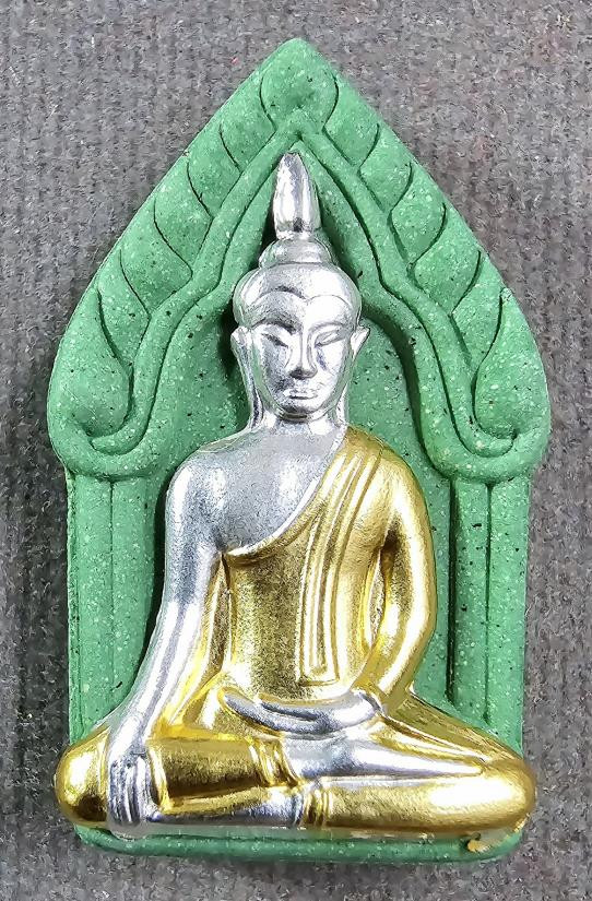 พระผงขุนแผน(พิมพ์กลาง) รุ่น "ศิลา พรมหามงคล" หลวงปู่มหาศิลา สิริจันโท ออกวัดโพธิ์ศรีสะอาด เนื้อเขียวมรกต หน้ากาก 2K หลังโค๊ดหมายเลข ๗๐...โค๊ดอักษร "ศ" ในรัศมี มีเพียง 1 องค์ในลัง รุ่นนี้เป็นพิมพ์กลา |