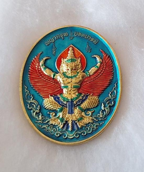 เหรียญพญาครุฑ หลวงปู่ศิลา วัดโพธิ์ศรีสะอาด รุ่นยอดบารมี ลังนำฤกษ์ เนื้อทองทิพย์ลงยาพื้นฟ้า No.25 |