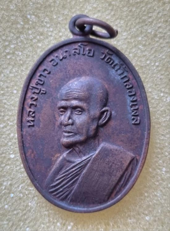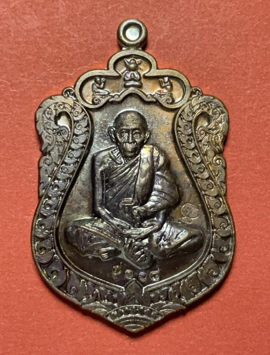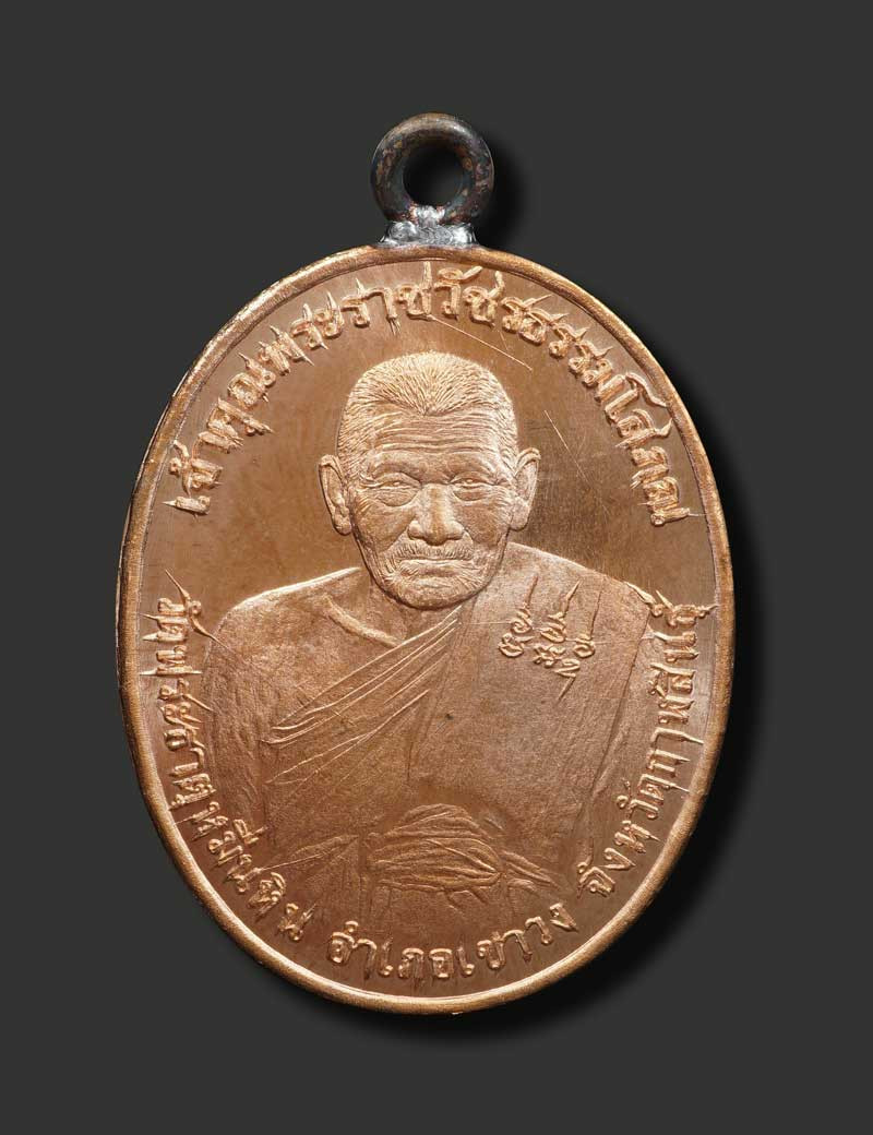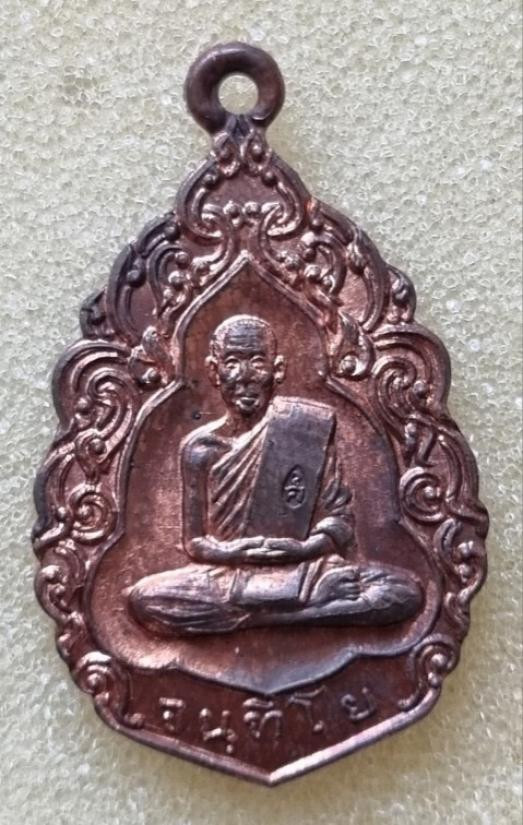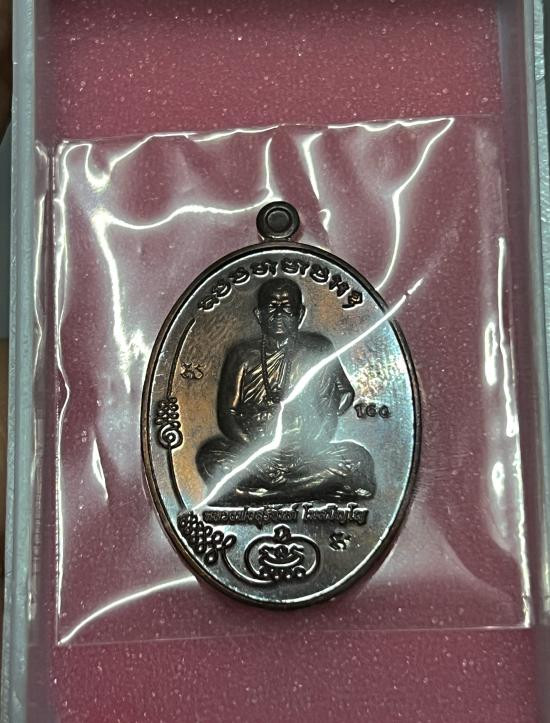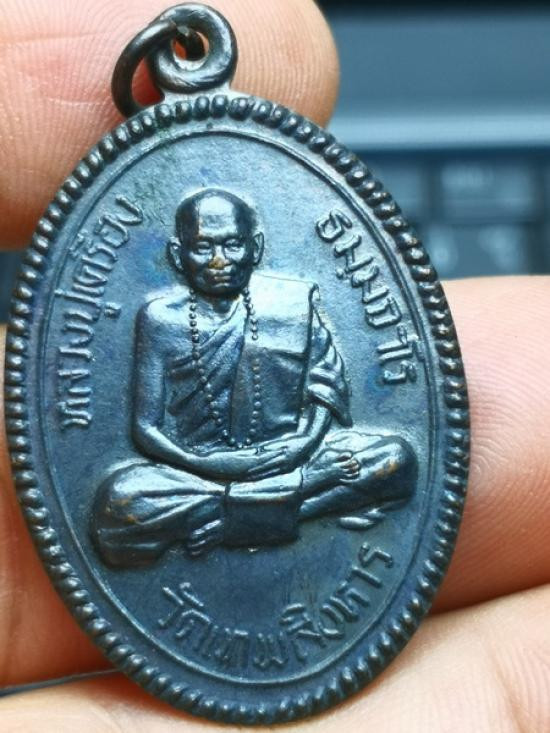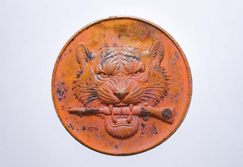 วัดใจ เหรียญพญาพยัคฆ์ เนื้อทองแดงรมมันปู หลวงปู่มี วัดโพนทอง จังหวัดสุรินทร์ เนื้อทองแดงรมมันปู หมายเลข ๕๘๖ (สร้าง 1,999 องค์) |