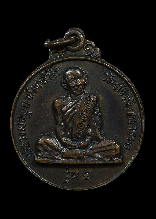 เหรียญทำน้ำมนต์หลวงปู่ศรี มหาวีโร วัดป่ากุง ร้อยเอ็ด รุ่นแรก ปี ๒๕๕๒ เนื้อสัมฤทธิ์ พิมพ์ยันต์นะมหาเศรษฐี |