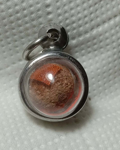 พระผงนั่งเมฆ หลวงปู่มหาศิลา สิริจันโท วัดโพธิ์ศรีสะอาด จังหวัดกาฬสินธุ์ เนื้อผงมวลสารสีแดง |