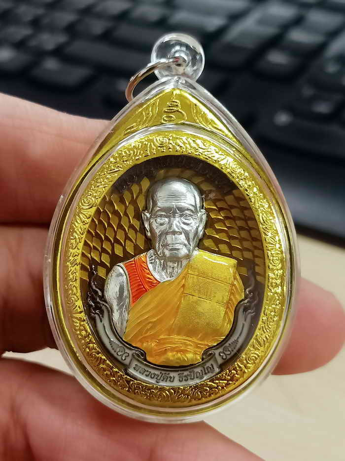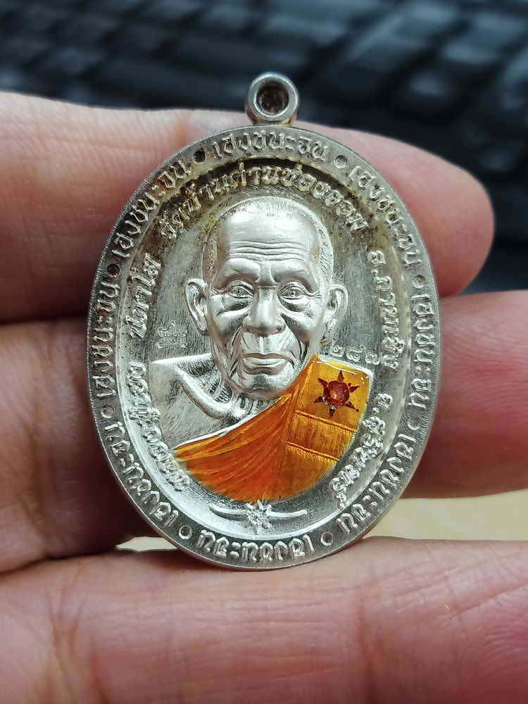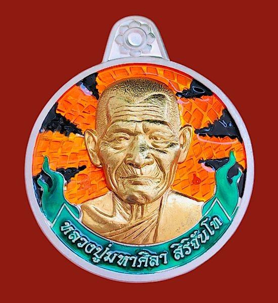 หลวงปู่มหาศิลา อุดมทรัพย์ เนื้อเงินลงยาส้มลายเสือหน้าทองคำ แยกชุดอุปถัมภ์ ลงยาสวยๆ จมูกมีลักยิ้มตรงปลาย เลขสวย 6ไม่มีกล่องเดิม |