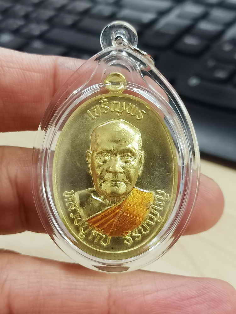 เหรียญหลวงพ่อสายทอง รุ่นประวัติศาสตร์ไตรภาคี ปี 2558 เนื้อทองเหลือง โค๊ต ๙ หมายเลข 12 |