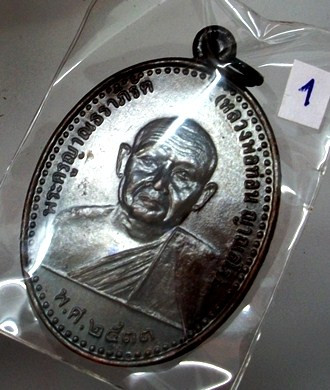 รูปหล่อรุ่นแรกหลวงปู่ท่อน ญาณวโร เนื้อเงินปี 2533 วัดศรีอภัยวัน จังหวัดเลย |