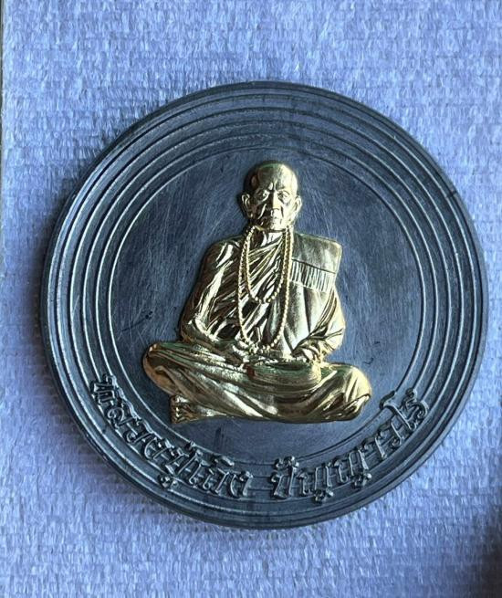เหรียญเสมารวยทันใจ หลวงปู่ศิลา สิริจันโท รุ่นรวยรวยล้านล้าน เนื้อทองแดงรมดำหน้ากากทองทิพย์ แจกกรรมการ จัดสร้าง1,999องค์ no.60 |