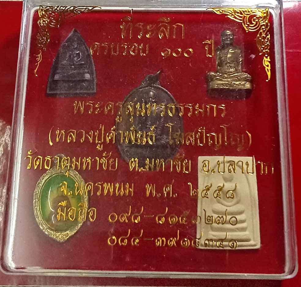 ชุดที่ระลึกครบรอบ 100 ปี หลวงปู่คำพันธ์ วัดธาตุมหาชัย จ.นครพนม ปี58 (พิธีใหญ่) พุทธคุณเยี่ยม พระของท่านมีประสบการณ์มากมายครับ + สภาพสวยพร้อมกล่องเดิมจากวัด + เปิดราคาเบาๆ จบได้เท่าไรเท่านั้นครับ |