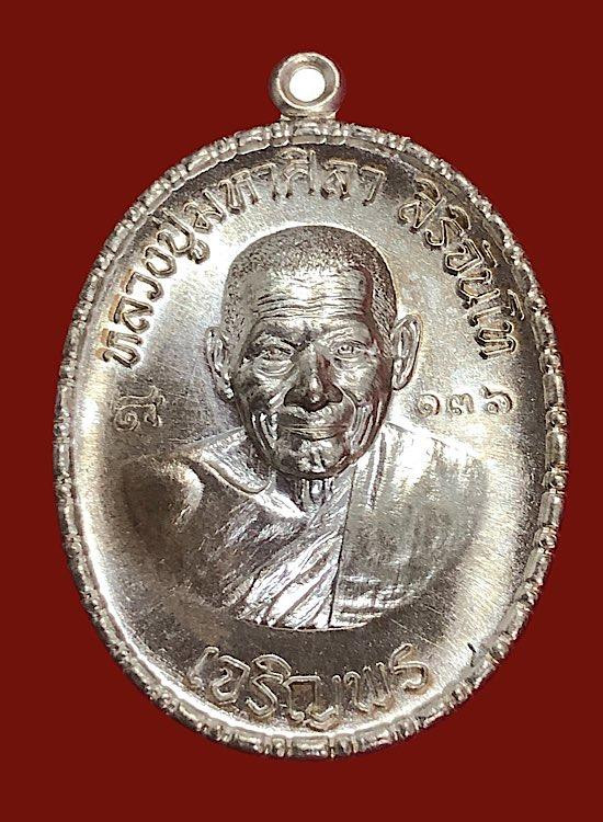หลวงปู่มหาศิลา เจริญพรล่าง เนื้อนวะพลายเงิน ผิวสวยวิ้งๆ จมูก100 เลข136 กล่องเดิม |