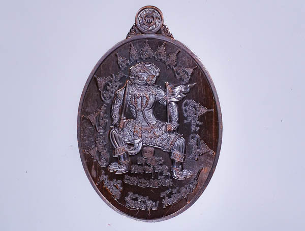 (เคาะเดียวแดง) เหรียญรุ่นแรก หลวงปู่หงษ์ พรหมปัญโญ วัดเพชรบุรี จ.สุรินทร์ ปี2541 เนื้อทองแดงรมดำ หลังยันต์จตุธาตุ |