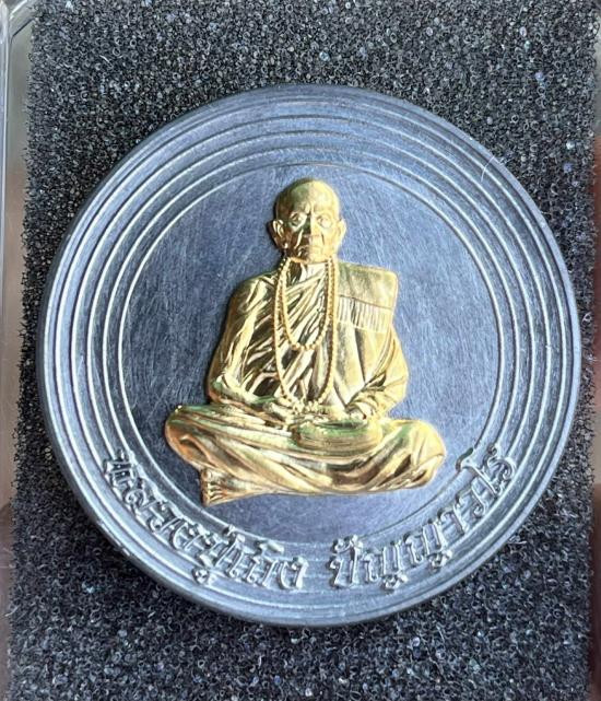 เหรียญนั่งพานหลวงพ่อทอง รุ่นเจริญพร ปี 2564 เนื้อแบล๊กโรเดี้ยม หมายเลข 1619 |