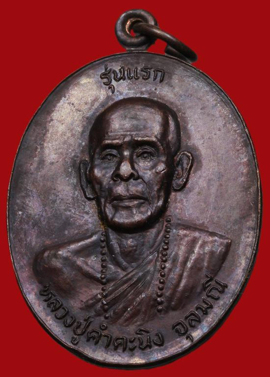 เคาะเดียวแดง เหรียญรุ่นแรก หลวงปู่คำคะนิง วัดถ้ำคูหาสวรรค์ โขงเจียม อุบลราชธานี ปี 2527 |