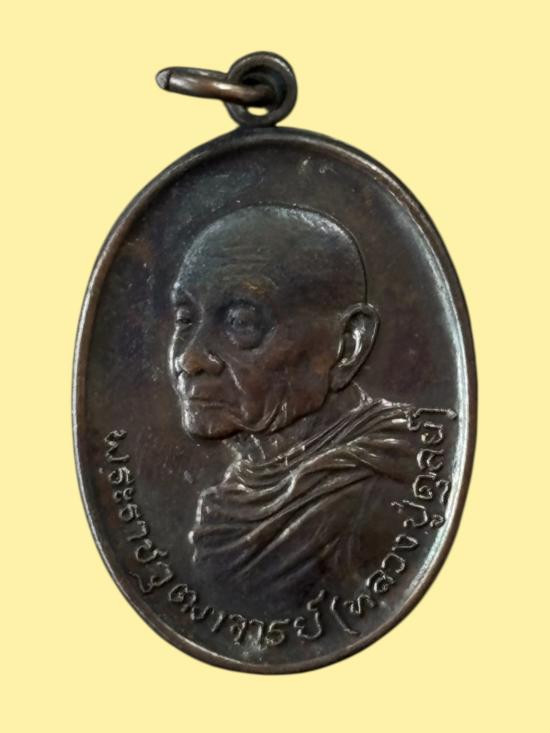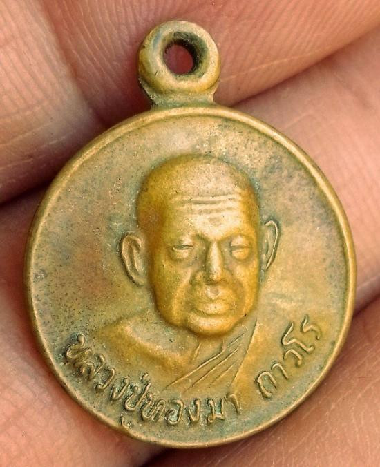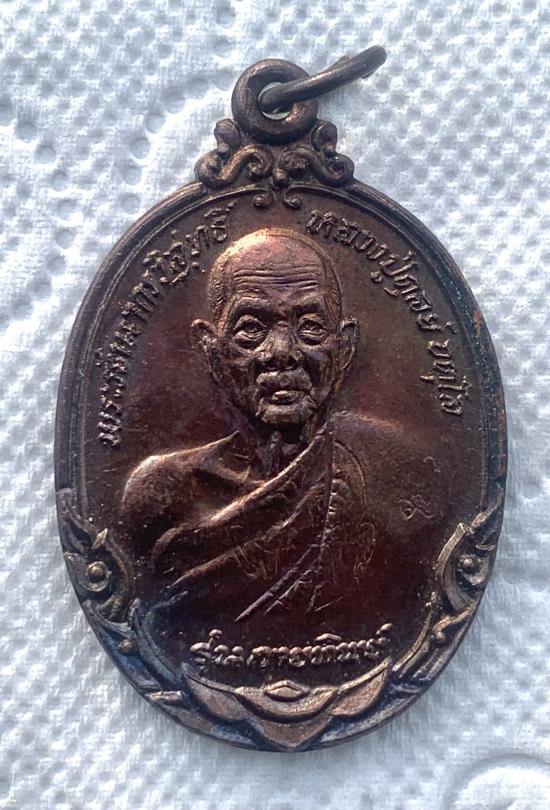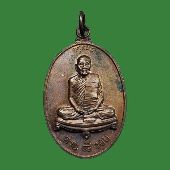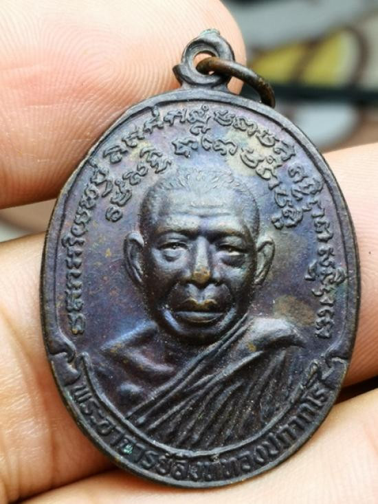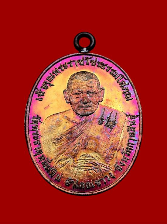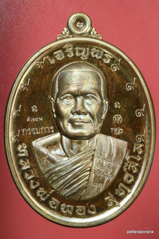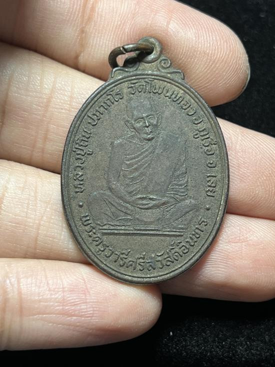 เหรียญเลื่อนสมณศักดิ์ หลวงพ่อทอง วัดพระพุทธบาทเขายายหอม จ.ชัยภูมิ เนื้อทองแดงรมมันปู ผิวรุ้งสวย |