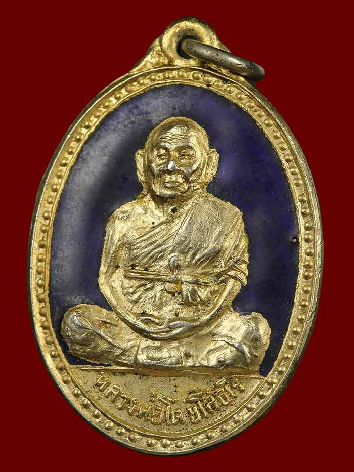 วัดใจ เหรียญเจริญทรัพย์ หลวงพ่อโต ยโสธโร วัดบ้านกล้วย จ.นครราชสีมา ปี 2517 เนื้อกะไหล่ทองลงยา |