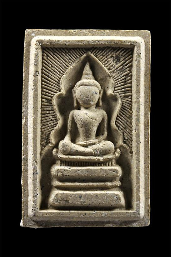 พระบูชาหลวงพ่อพุทธศักสิทธิ์ เนื้อดินเก้าบังสีดำลงรักปิดทอง หลวงปู่คำพันธ์ วัดธาตุมหาชัย จ.นครพนม ปี 2541 |