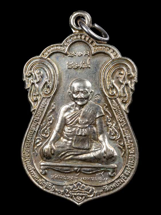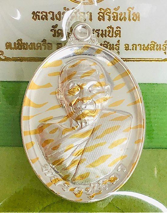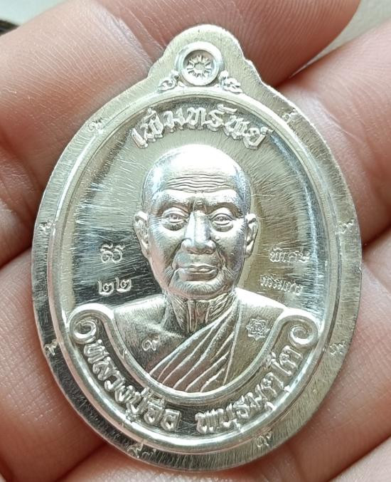 เหรียญหลวงปู่มหาศิลา รุ่น รวยรวยล้าน เนื้อเงินพลายทอง ผิวกระจกจมูก100 เลข467 กล่องครบ |