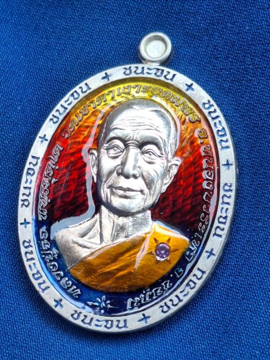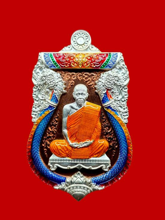 เคาะเดียวแดง เหรียญบูชาครู หลวงปู่สูนย์ วัดป่าอิสระธรรม เนื้อสัตตะลงยาแดงลงยาจีวร |
