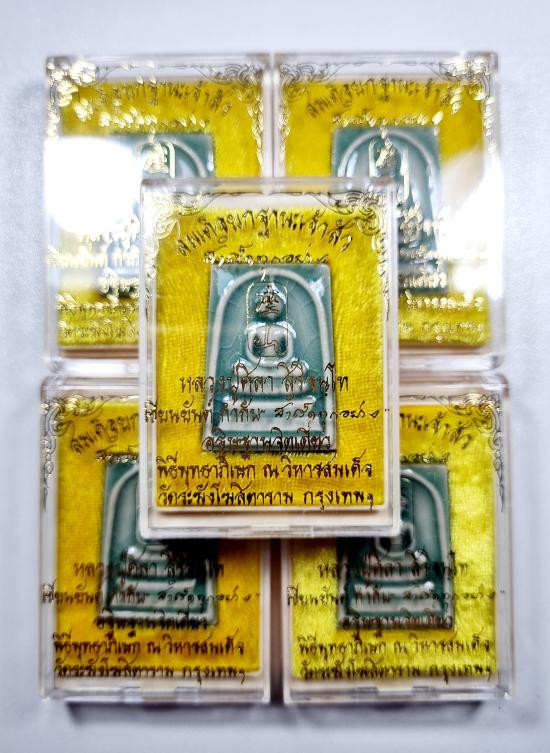 สมเด็จยกฐานะเจ้าสัว ลป.ศิลา ปี67 รุ่นสำเร็จทุกอย่าง เนื้อกระเบื้องเคลือบ 5องค์ |