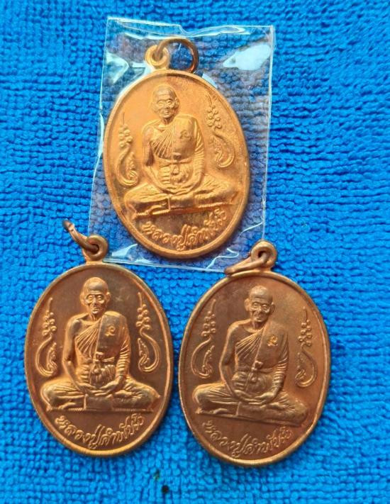 เหรียญหลวงปู่คำพันธ์ วัดธาตุมหาชัย จ.นครพนม รุ่นอุดมความสุข เนื้อทองแดงผิวไฟ ปี 2540 เคาะเดียว 3 เหรียญ |