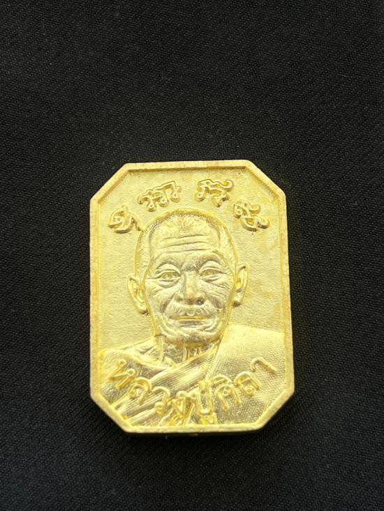รูปหล่อหลวงปู่ศิลา รุ่นรวยโกฏิล้าน เนื้อทองฝาบาตร เลข 176 กล่องเดิม |