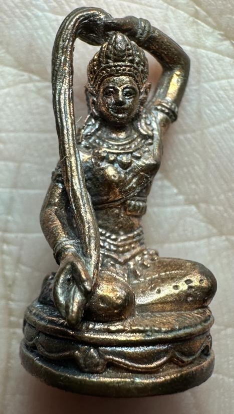 หลวงปู่หงษ์ พระแม่ธรณี รุ่นแรก เนื้อสำริด ปี 2549 พร้อมซองเดิม ตอกโค๊ตตอกหมายเลขใต้ฐาน |