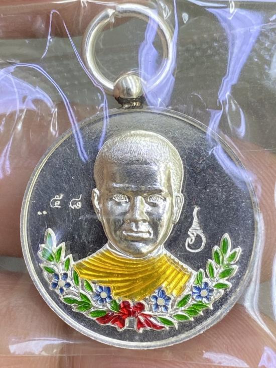เหรียญกลมหน้าหนุ่มหลวงพ่อทองวัดบ้านไร่ เนื้อเงิน ลงยา เลข 58 กล่อง เหรียญสวยมาก |