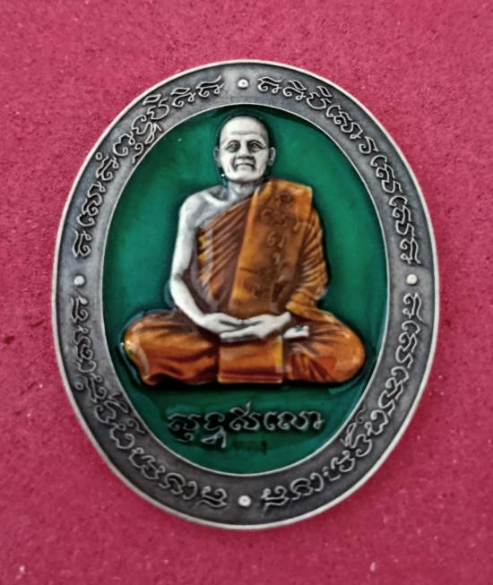 หลวงพ่อทอง วัดบ้านไร่ เหรียญรุ่น 5 แชะ เนื้อเงินรมซาติน ลงยาเขียว ลงยาจีวร NO.๓๓๑ |