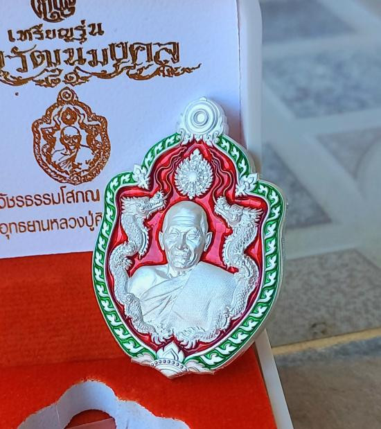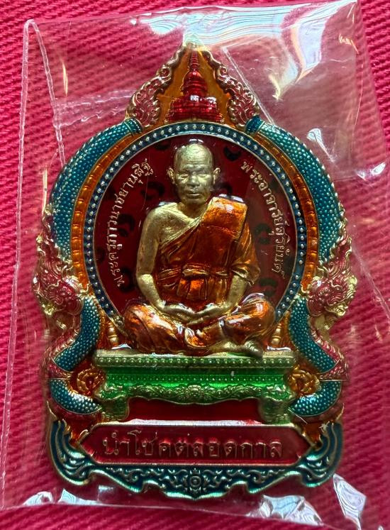วัดใจไปเลย เหรียญนั่งพานพระอาจารย์สุริยันต์ วัดป่าวังน้ำเย็น จ.มหาสารคาม ปี 2565 รุ่นนำโชคตลอดกาล เนื้อทองฝาตราลงยา หมายเลข 9 |