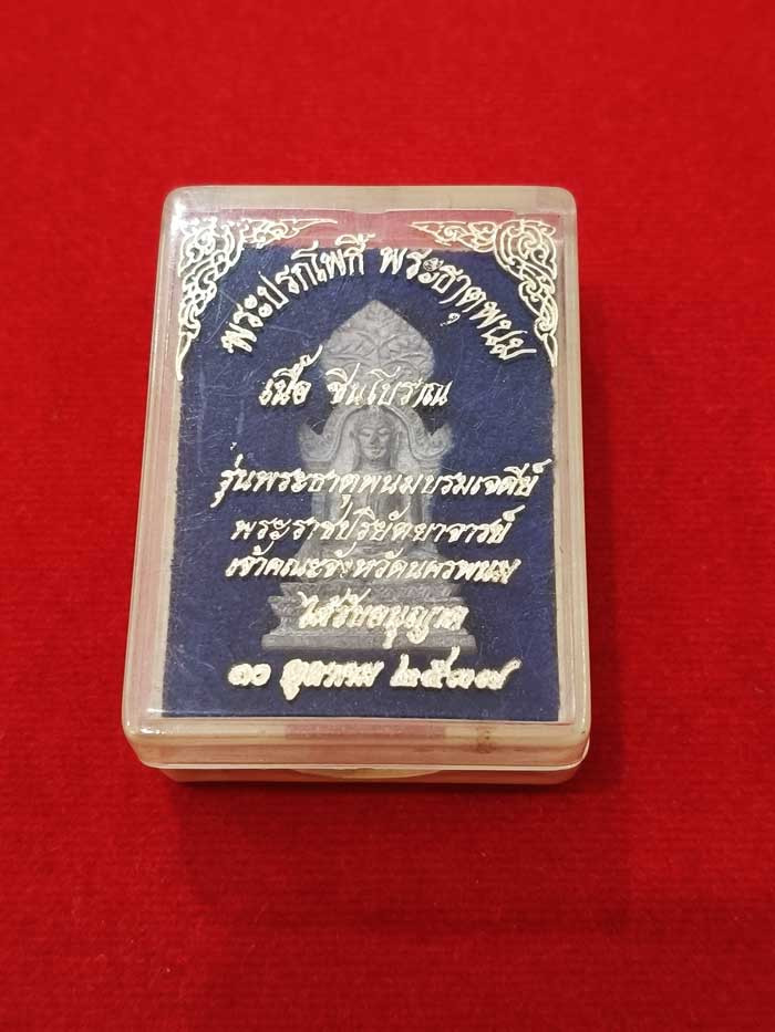 เคาะเดียวแดง พระปรกโพธิ์พระธาตุพนมเนื้อชินโบราณปี 2537 พร้อมกล่องเดิม |