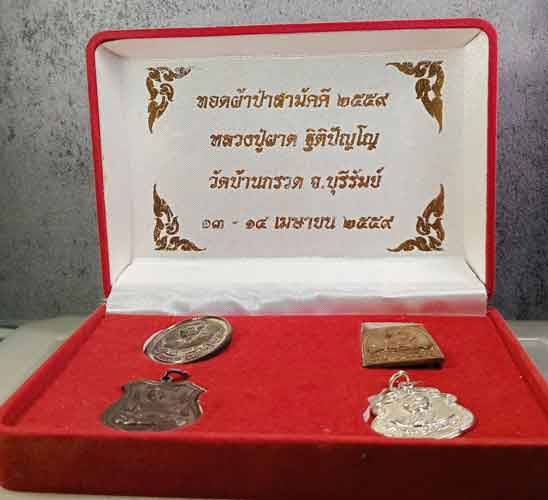 ชุดเหรียญกรรมการ รุ่น ทอดผ้าป่า 59 เหรียญเก่าหลวงปู่ผาด ฐิติปัญโญปลุกเสก วัดบ้านกรวด บุรีรัมย์ ปี 2559 กล่องเดิม |