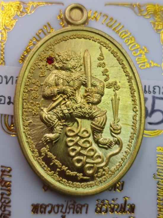 หลวงปู่มหาศิลา สิริจันโท เหรียญพระหูมาน หนุมานแผลงฤทธิ์ เนื้อทองทิพย์ฝังพลอยแดงแถมมาพร้อมเนื้อทองคำ no.335 |