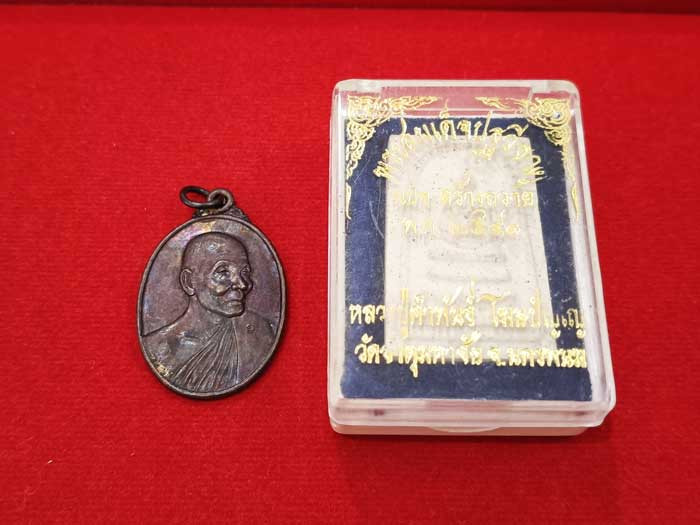 (เคาะเดียว เลขตอง 222) เหรียญหลวงปู่พัน รุ่นชนะมาร ปี62 เนื้อทองแดงหน้ากากอาบเงิน เลี่ยมกันน้ำ (ไม่มีกล่อง) |