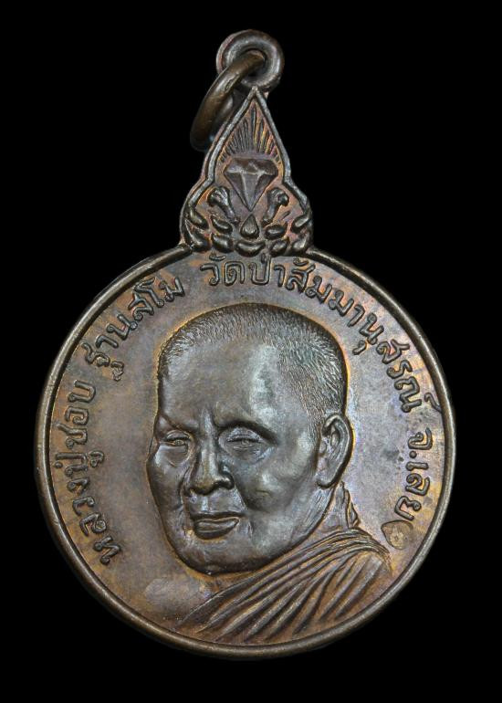 เหรียญหลวงปู่ชอบ ฐานสโม วัดป่าสัมมานุสรณ์ จ.เลย รุ่นเมตตา 77 ตอกโค้ต ปี 2520 |