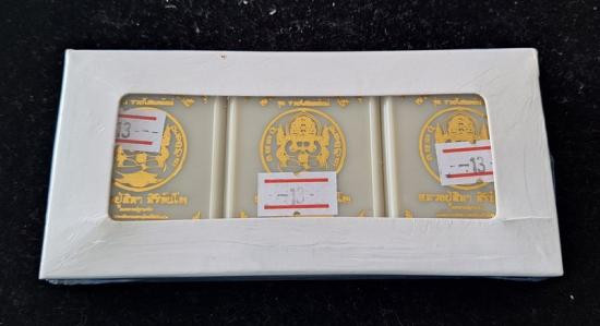 หลวงปู่มหาศิลา สิริจันโท พระปิดตาพังพระกาฬ รุ่นรวยโชคอนันต์ ชุดกรรมการลงยา3เหรียญ ไม่แกะซีลลุ้นเลขสวย |