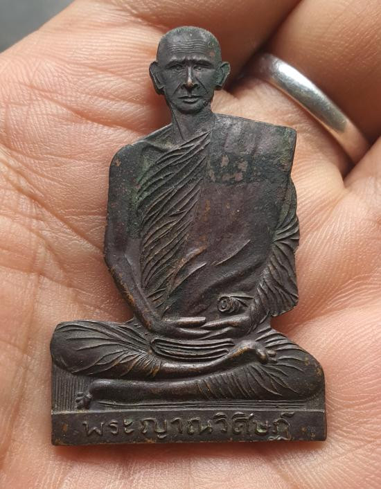 เหรียญแผ่นปั๊มพระญาณวิศิษฏ์(สิงห์) วัดป่าสาละวัน จ.นครราชสีมา หลังยันต์นก เนื้อทองแดงรมดำ |