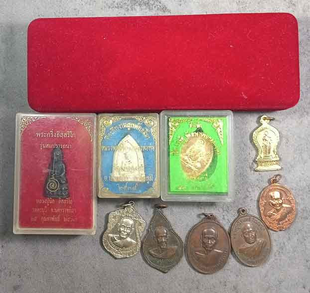 เหรียญ เนื้อเงินลงยาสีแดง หลวงพ่อเกลี้ยง วัดวิสุทธิโสภณ จ.ศรีสะเกษ ปี2536 ตอกโค๊ต หมายเลข 112 กล่องเดิมสวยครับ |