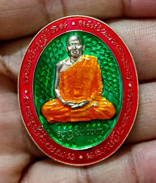 หลวงพ่อทอง วัดบ้านไร่ เหรียญรุ่น 5 แชะ เนื้อเงินบริสุทธิ์ ลงยาเขียว ขอบส้ม NO.๒๖๔ |