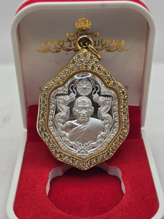 หลวงปู่มหาศิลา รวยรวยล้าน เนื้อเงินพรายทอง หลังหนุมาน ผิวสวย จมูกโด่งเลข105 กล่องครบคัดสวยๆ |