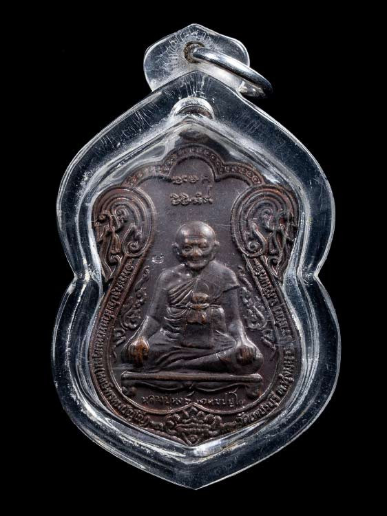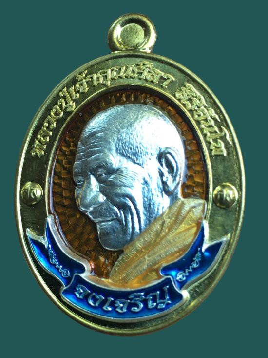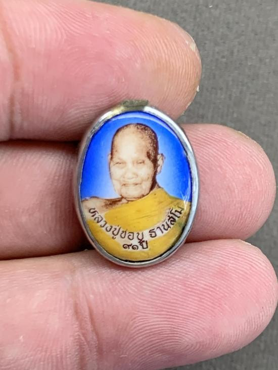 ล็อกเก็ตหลวงปู่ชอบ ฐานสโม รุ่นอายุ 91 ปี ฉากน้ำเงิน ปี 2535 วัดป่าโคกมน จ.เลย |