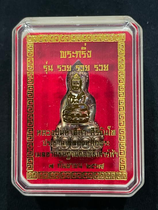 พระขุนแผน หลวงพ่อทอง สุทธสีโล รุ่น เศรษฐี เงิน ทอง ออกวัดพระพุทธบาทเขายายหอม ปี 58 เนื้อ อัลปาก้าซาติน หมายเลข 1599 มีจาร เคาะเดียวแดง |