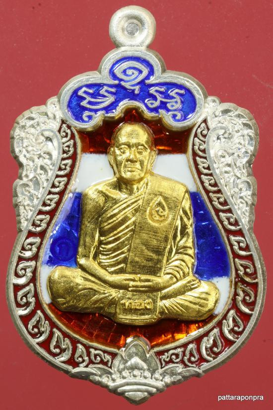 เหรียญหลวงพ่อทอง รุ่นทองสิบทิศ ปี 2563 เนื้อเงินลงยาสีธงชาติ หน้าทองคำ หมายเลข 39 |