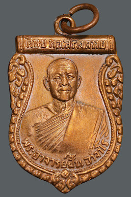 เหรียญพระอาจารย์ฝั้น รุ่นร่มโพธิ์ทอง (รุ่น 116) ครบรอบ 77ปี พิมพ์ใหญ่ วัดป่าอุดมสมพร ปี 2519 |