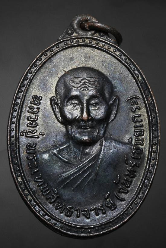 เหรียญเจ้าสัว หลวงปู่สมศรี อัตตสิริ วัดป่าเวฬุวนาราม จ.เลย เนื้อทองแดง ออกวัดเลียบ เลข 1159 |