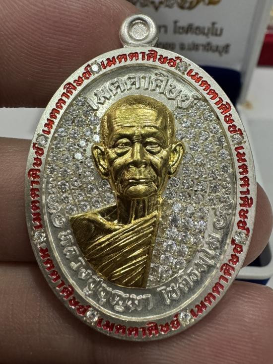 พญาชิงดวง หลวงปู่ศิลา เนื้อนวะพรายเงิน เลข 599 สวยๆ มีกล่องค่ะ |