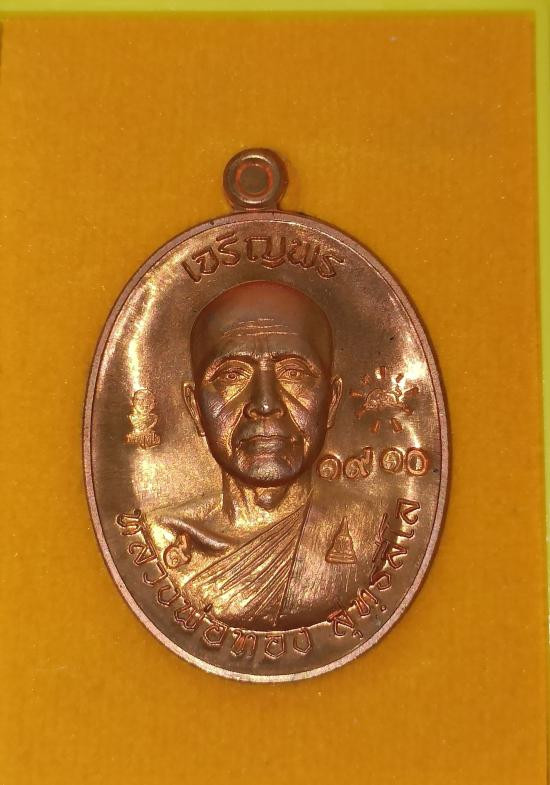 เหรียญห่วงเชื่อม หลวงพ่อทอง รุ่นประวัติศาสตร์ไตรภาคี ปี 2558 เนื้อทองฝาบาตร หมายเลข 1904 |