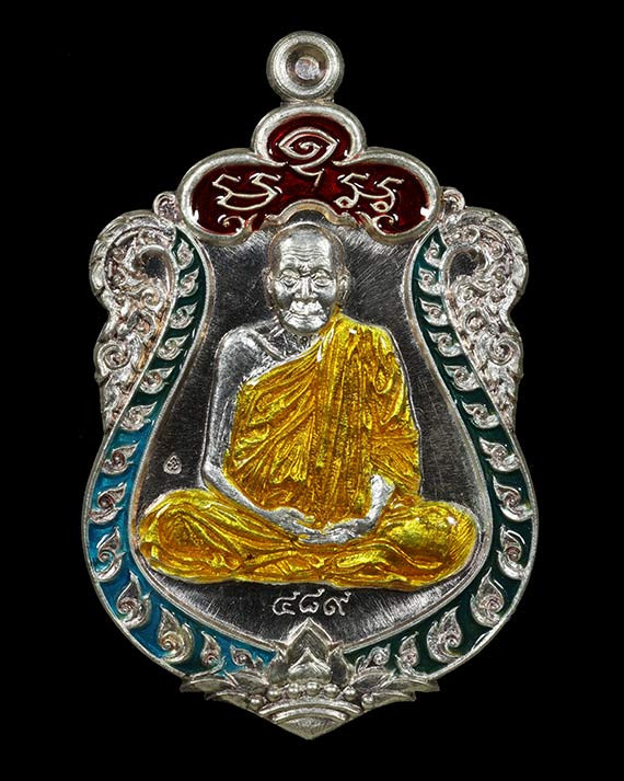 *กระหลั่ยเงินลงยา ของดีปู่ศิลา เข้มขลังมาก เหรียญหล่อเสมา ราหูอมจันทร์ หลวงปู่ศิลา วัดโพธิ์ศรีสะอาด วัดจัดสร้างเอง เคาะเดียวแดง* |