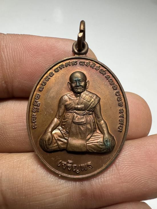 เหรียญครบรอบ 80 พรรษาหลวงปู่หลุย จันทสาโร วัดถ้ำผาบิ้ง จังหวัดเลย ปี 2524 เนื้อทองแดงผิวไฟ |