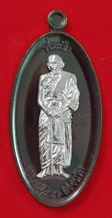 เหรียญยืน หลวงปู่มหาศิลา สิริจันโท เนื้อนวะหน้ากากเงิน หมายเลข 749 รุ่นอายุวัฒนมงคล 81 จ.กาฬสินธุ์ |