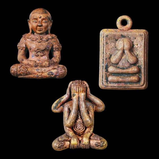 วัดใจ พระผงเจ้าสัวบายน หลวงปู่หงษ์ หน้ากากทองคำตะกรุดทองคำ |