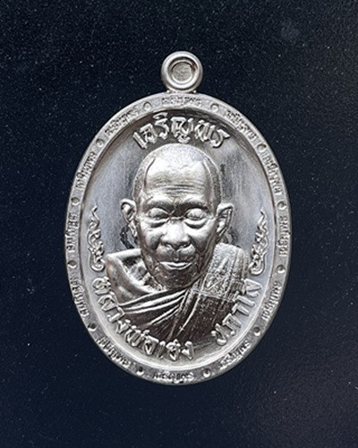 เหรียญเจริญพร 8 รอบ เนื้อทองแดง กะหลั่ยเงิน ปี 2566 หลวงพ่อเฮง ปภาโส วัดบ้านด่านช่องจอม จ.สุรินทร์ หมายเลข 504 |