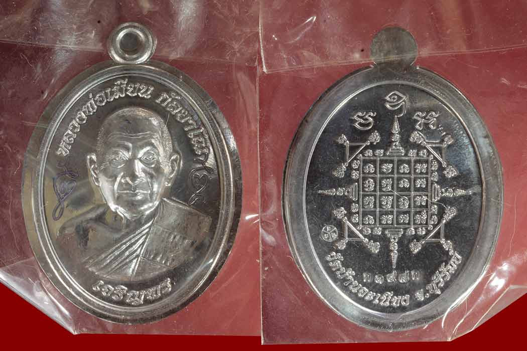 #2 วัดใจ 5 เหรียญ เหรียญเจริญพรล่าง หลวงพ่อเมียน วัดบ้านจะเนียง เนื้อตะกั่วไม่ตัดปีก มีเลข มีโค๊ต ไม่มีกล่อง เพราะหากล่องไม่เจอน่ะครับ สร้าง 200 เหรียญ |