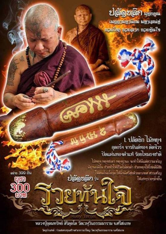 วัดใจ...#1 รก.1ไม้พยุง อุดกริ่ง จานยันต์สีทอง ติดจีวร ร้อยไหมธงชาติ (จอง300) ปลัดขิก รวยทันใจ หลวงปู่อุดมทรัพย์ วัดเวฬุวันธรรมาราม อำเภอพยุห์ จังหวัดศรีสะเกษ |